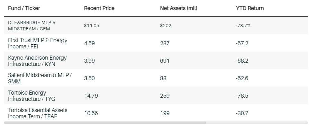 MLP 폐쇄 형 펀드는 올해 일부가 75 % 이상 하락했습니다. 파이프 라인 주식은 급격히 하락하고 펀드로 인한 손실은 레버리지로 확대되었습니다. 3 월 파이프 라인 주가가 폭락하면서 많은 펀드가 주식을 팔고 레버리지를 삭감해야 했습니다. 그 deveraging은 가능한 최악의 시간에 발생했습니다.