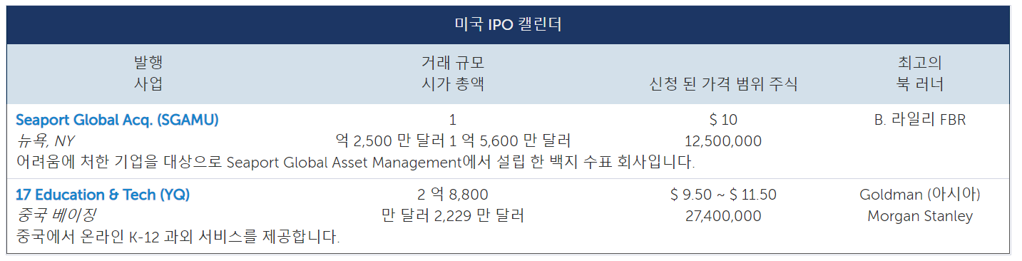 다음 주는 1 개의 IPO와 1 개의 SPAC 가 예정되어 있어서 현재로서는 상대적으로 조용합니다.