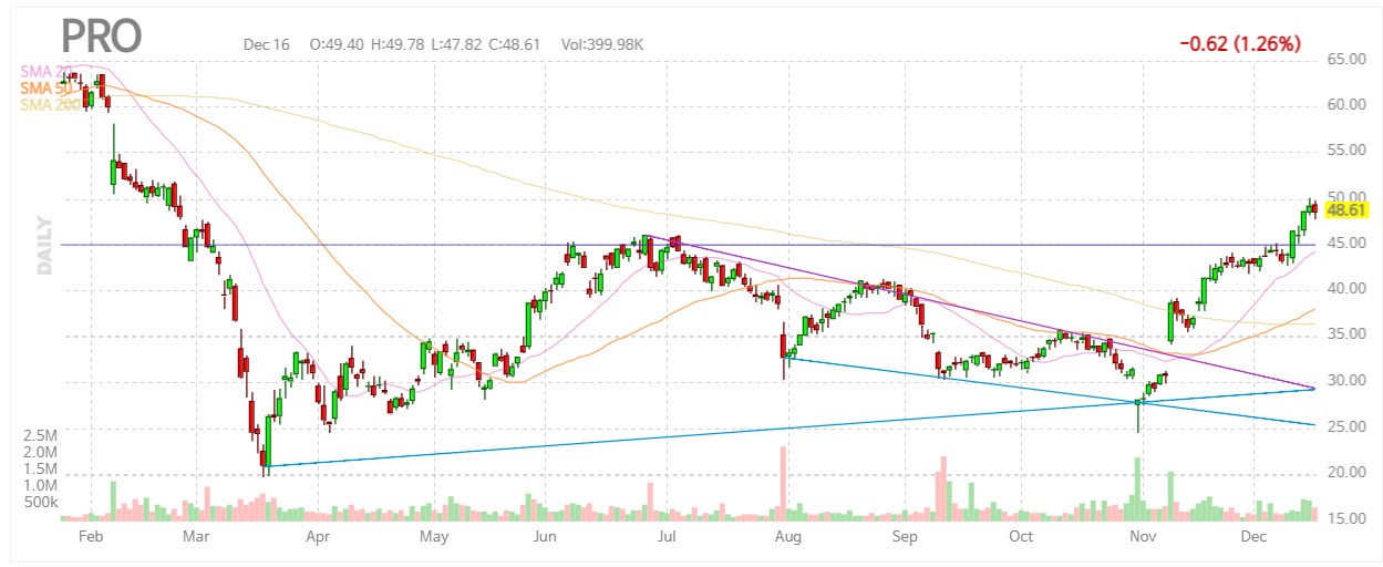 현재까지 PROS Holdings Inc. (NYSE : PRO ) 주가는 17.8 % 하락했으며 12 월 15 일 종가는 $ 49.23이었습니다.