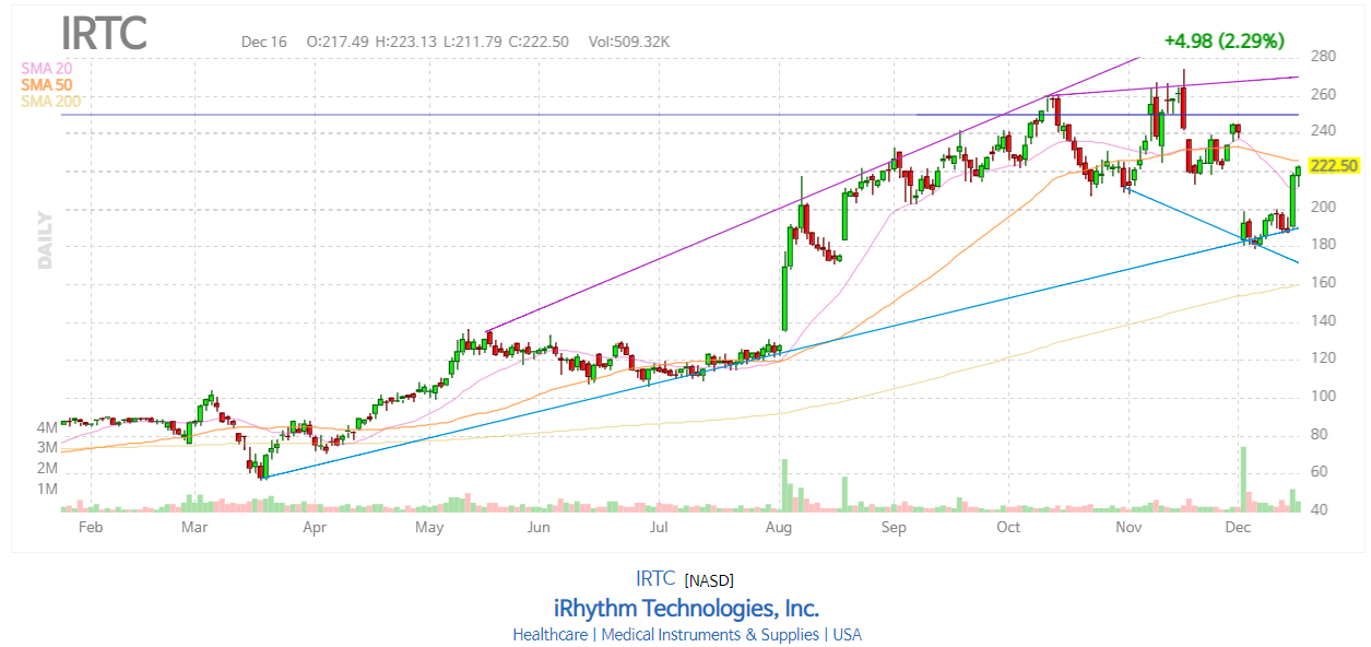 현재까지 iRhythm Technologies Inc. (NASDAQ; IRTC ) 주식은 219.5 % 상승했으며 12 월 15 일 종가는 $ 217.52입니다.
