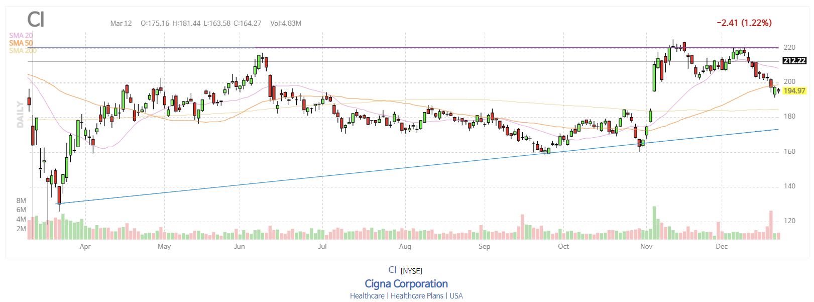 Cooperman은 11 월 CNBC 인터뷰에서 의료 보험사를 언급하면서 S & P 500이 하늘 높은 배수로 거래되고 있지만 4x-8x 수익 범위에서 여전히 좋은 거래가 발견되어 Cigna가 그러한 회사임을 지적했습니다. 좋은 소식은 Cigna는 현재 약 9.5 배의 선도 P / E로 거래되고 있다는 점입니다.