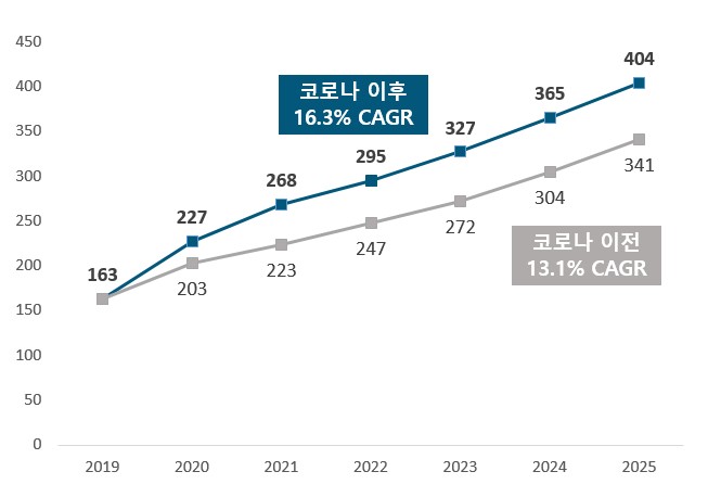 코로나19 이전 에듀테크 지출이 1630억 달러에서 2025년까지 13.1% 연평균성장률을 보일 것으로 전망됐으나 2020년 코로나19로 인해 당초 전망을 뛰어넘은 16.3% 연평균 성장률을 보이면서 2025년에 이르러 처음 예상인 3410억 달러 규모가 아닌 4040억 달러에 이를 것으로 전망했다. 이처럼 코로나19는 에듀테크 기업에는 위기가 아닌 기회로 작용했다.