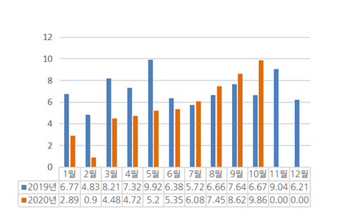 중국 자동차 동력 생산량 데이터 (2019-2020년 1~10월 비교치)