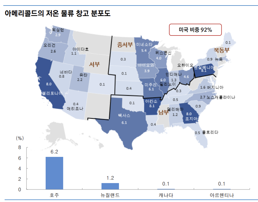 - 전 세계 5개국에 185개 저온 물류 창고 보유.