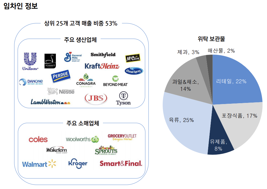 - 미국 비중 92% Nestle, General Mills 등 대형 식품 회사가 임차하고 있으며, 전체 이용 고객은 2,600명