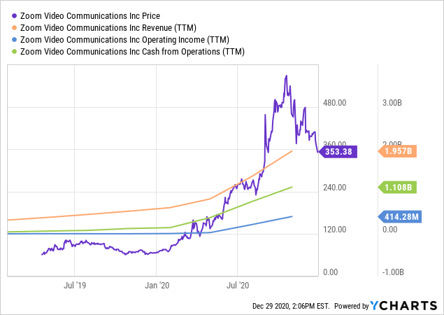 펀더멘털을 따라잡는 주가가 어떻게 생겼는지 알고 싶다면 Zoom의 모든 면에서 폭발적인 연도를 보여주는 다음 차트를 참조하십시오.