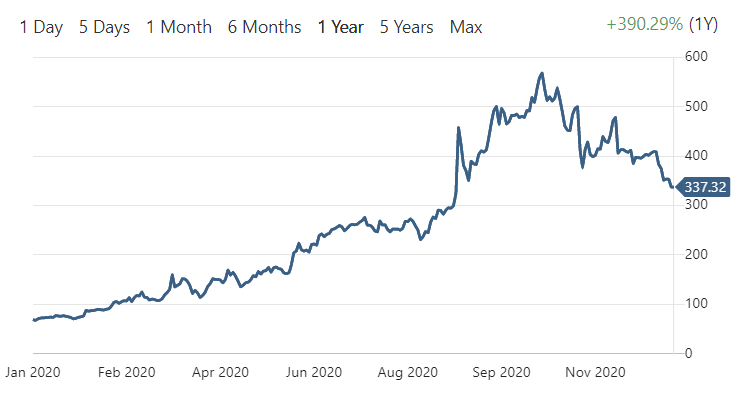 이러한 요인으로 인해 CrowdStrike Holdings Inc. (CRWD), Digital Turbine, Inc. (APPS), Zoom Video Communications, Inc. (ZM), Square, Inc. (SQ) 및 Pinterest (PINS), 이상 5가지 주식은 2020 년에 주가가 200 % 이상 상승했습니다.