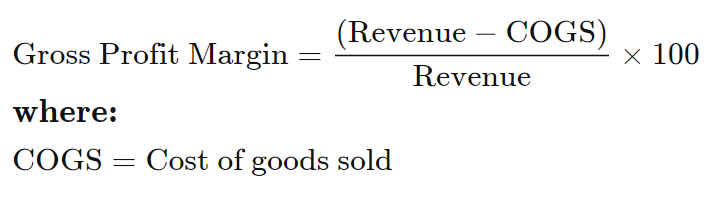 총 이익률은 매출원가 (COGS)를 초과한 수익의 비율을 나타냅니다. 이는 제품 및 서비스 생산에 관련된 비용을 고려할 때 회사의 경영진이 수익을 창출하는 데 얼마나 성공적인지 반영합니다.