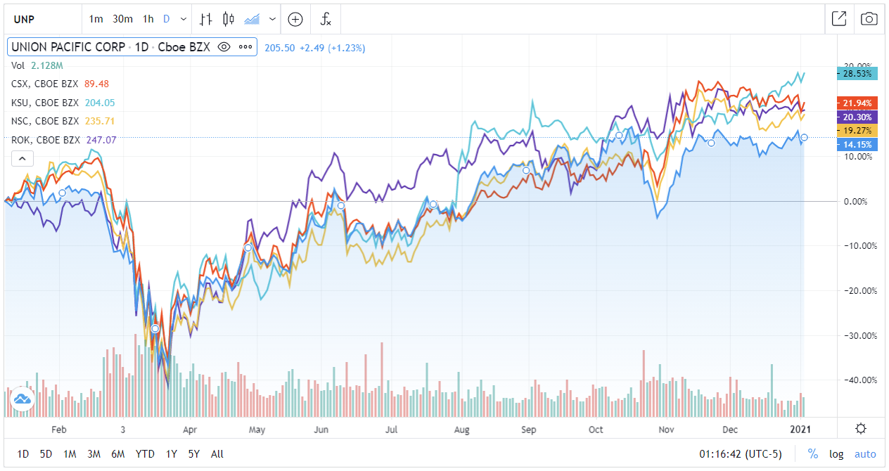 인프라 관련주 Top 5 - ROK, NSC, KSU, CSX, UNP