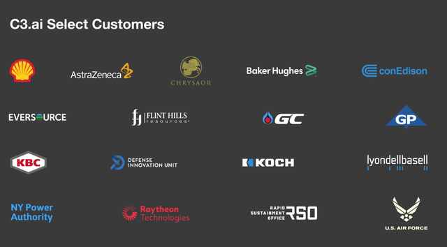 아래의 C3.ai의 S-1에서 가져온 이 스냅 샷 은 회사의 앵커 고객을 강조합니다. 이것은 매우 대표적인 목록입니다. 전체적으로 C3.ai에는 30 명의 고객만 있습니다.