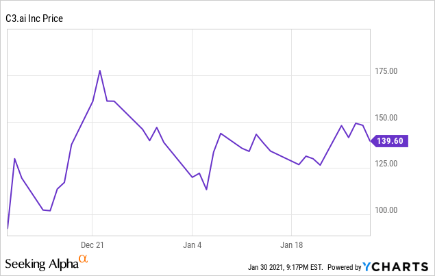 요즘에는 고가의 IPO가 예외 라기보다는 규칙으로 보입니다. 인공 지능 기업인 C3.ai ( AI )가 지난 12 월 주당 42 달러에 상장되었을 때 시장은 기업 소프트웨어의 가장 인기 있는 분야 중 하나에 있는 회사의 흥미로운 기술을 인용하면서 즉시 제품을 먹었습니다.