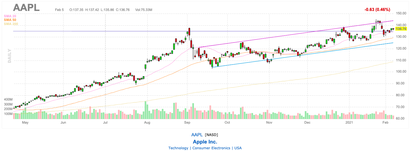 “Apple은 통신, 컴퓨팅 및 서비스 분야의 선도적인 기술 제공 업체입니다. Apple의 iOS 운영 체제는 회사 고유의 지적 재산이자 경쟁력입니다. 이 소프트웨어는 소비자 및 기업과의 긴밀한 관계를 유도합니다. 이러한 긴밀한 참여는 스트리밍 음악과 같은 고수익 서비스의 상당한 성장을 촉진합니다. 앱스토어 그리고 Apple Pay 등 애플의 지속적인 고수익 서비스 개발과 웨어러블 기기에 대한 수익 흐름은 물론 회사의 성장에 대한 5G 휴대폰의 잠재적인 기여는 애플 주식의 성과를 뒷받침했습니다.”