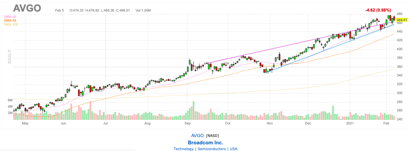 Broadcom은 미국에 기반을 둔 다양한 반도체 및 인프라 소프트웨어 제품의 개발자 및 제조업체입니다. 이 회사는 주로 데이터 센터, 네트워킹, 소프트웨어, 광대역, 무선, 스토리지 및 산업 시장을 대상으로 합니다.