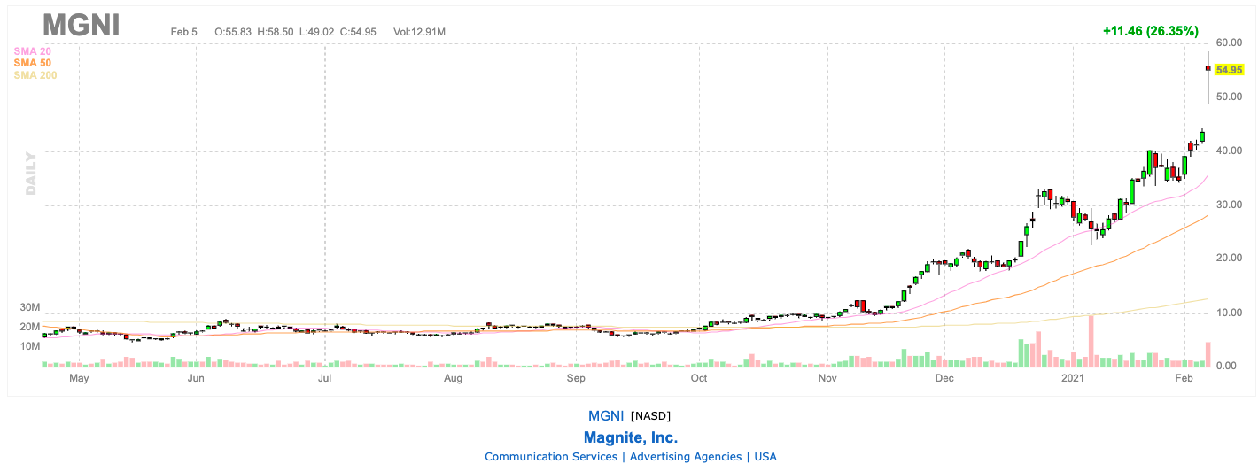 Magnite Inc.는 현재 30 억 7 천만 달러의 시가 총액을 보유한 광고 기술 플랫폼 기업입니다. 지난 3 개월 동안 Magnite는 217.38 % 의 막대한 수익을 냈으며 1 월 14 일 마감 시 주당 $ 27.80에 정산되었습니다.