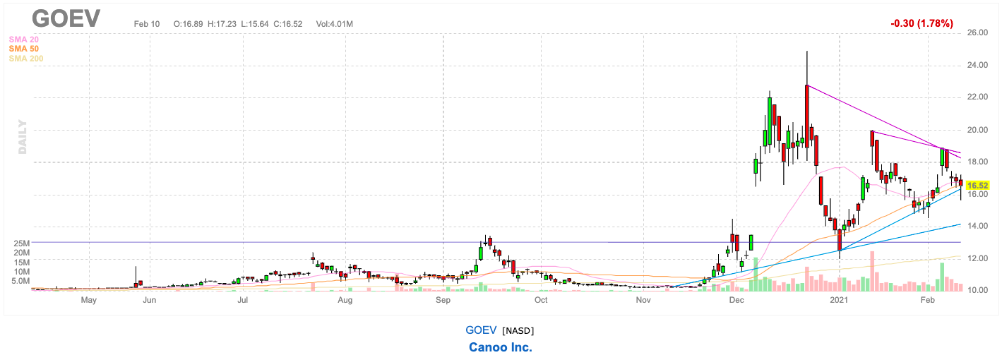 Canoo (NASDAQ : GOEV ). 많은 EV 회사가 있습니다. Canoo만큼 혁신적인 것은 없습니다. 말 그대로 바퀴를 재창조하고 있습니다. 이 회사는 자율 주행 시대를 대비해 실내 공간을 극대화한 완전히 새로운 유형의 자동차를 처음부터 만들었습니다. 또한 이 회사는 자동차 구매 방식을 완전히 재창조했으며 공유 자동차 소유권을 위한 파괴적인 구독 모델을 개척하고 있습니다. 여기의 DNA는 그 핵심에 혁신적입니다.