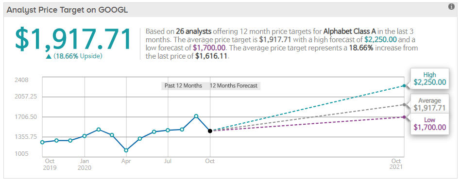 “구글 : 7 월과 8 월에 20 % 이상 상승한 후, 구글의 주가는 시장 전반의 조정 과정에서 9 월에 급격히 하락했습니다. 우리는 Google의 주식이 여전히 저평가되어 있으며 전염병이 2020 년에 비즈니스 성과를 떨어뜨리고 있지만 Google 검색, YouTube 및 Google지도와 같은 기타 자산의 핵심 가치는 영구적으로 손상되지 않았으며 사실상 COVID 이후 전 세계가 Google의 디지털 도구에 훨씬 더 많이 의존할 가능성이 높습니다. "
