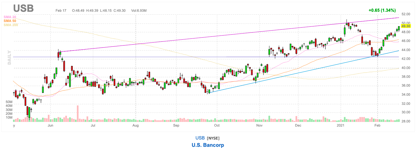 USB 점유율은 2021 년 현재까지 4.4 % 상승했지만 지난 12 개월 동안 여전히 11 % 하락했습니다. 긍정적인 측면에서 Berkshire는 수년 동안 USB에서 큰 배당금을 모으고 있습니다. 현재 배당 수익률은 약 3.4 % 입니다. US Bancorp는 비이자 소득의 강력한 성장 덕분에 12 월 분기에 긍정적인 수익 성장을 기록한 몇 안 되는 은행 중 하나입니다. 4 분기 주당 순이익은 95 센트로 작년 같은 기간의 90 센트에서 증가했습니다.