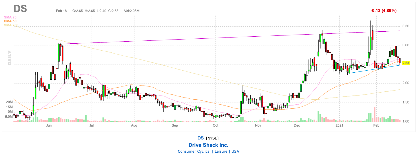 우리가 강세장에 있다면 Drive Shack은 고려해야 할 더 나은 엔터테인먼트 주식 중 하나가 될 것입니다. 하지만 특히 기업 파티 이용권 개발. 음식, 음료 및 골프 연습장을 갖춘 Drive Shack은 증기를 발산하는 완벽한 방법입니다. 하지만 그런 다음 코로나 바이러스가 발생하여 DS 주식을 침몰했습니다.