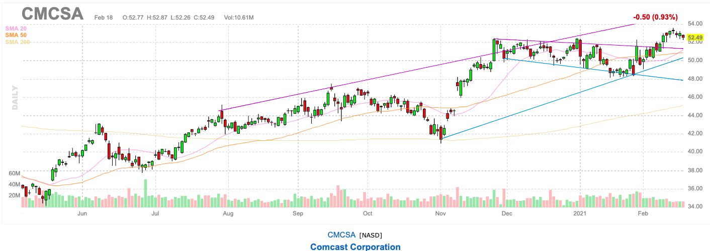 Comcast가 Fox 인수를 놓친 이후로 주식 가치도 크게 증가했습니다. 그중 일부는 Covid-19 위기와 관련이 있습니다. 재택근무 피벗으로 인해 연결 서비스에 대한 수요가 증가함에 따라 회사는 상당한 이익을 얻었습니다.