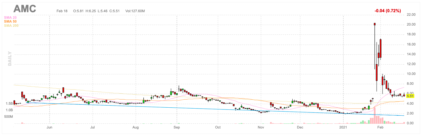 나는 Covid-19 대유행이 잔인하고 때로는 변덕스러운 촉매제였기 때문에 너무 깊이 추측하고 싶지 않습니다. 일부 부문에서는 호의적으로 행동하고 다른 부문에서는 호의적으로 행동하지 않습니다. 그러나 SARS-CoV-2 처리 과정이 예상보다 나아지면 AMC가 다시 날아갈 수 있습니다.