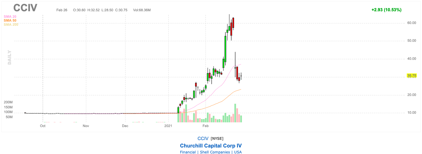 전기차 주식의 주가가 급락하면서 지금은 Churchill Capital Corp IV (NYSE : CCIV ) 주식 을 매입하기에 좋은 시기가 아닙니다.