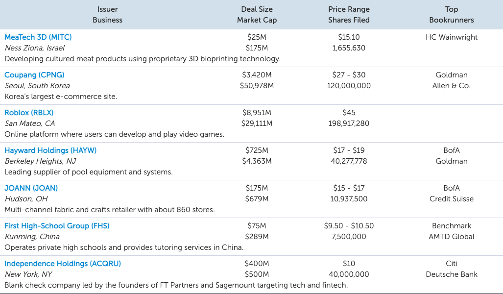 온라인 게임 플랫폼 Roblox ( RBLX)는 290 억 달러 이상의 상장시 시장 가치로 추정되는 올해 최초의 직접 상장입니다. 강력한 현금 흐름으로 수익성이 없는 회사의 성장은 전염병에 의해 가속화되었지만 모든 수익을 플레이어의 1 %에 의존하고 있습니다. Roblox는 작년의 주요 직접 상장 인 Palantir ( PLTR ; 기준 가격에서 + 230 %) 및 Asana ( ASAN ; + 46 %) 에 이어 지난달 NYSE에 직접 상장을 신청 한 암호 화폐 거래소 Coinbase ( COIN )에 앞서 있습니다.