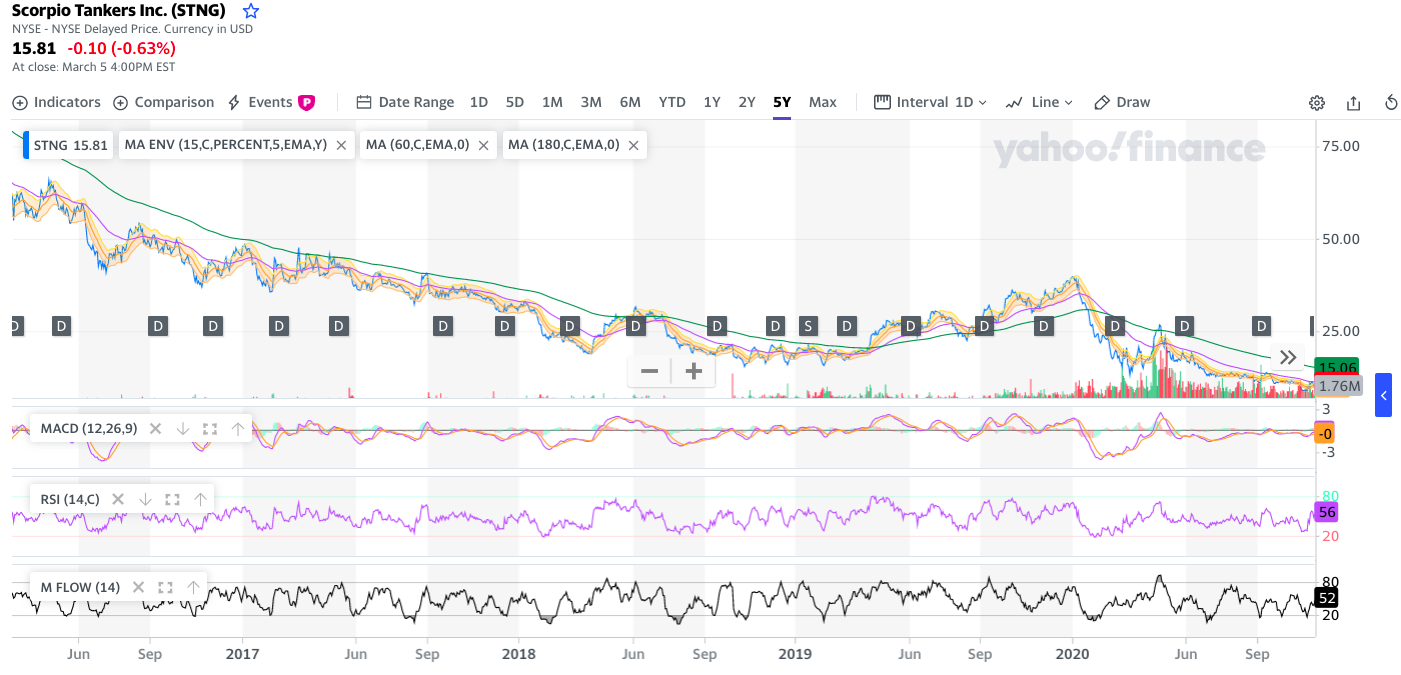 회사는 현재 2.53 % 의 배당 수익률을 제공합니다. 2020 년 4 분기 동안 STNG는 7630만 달러의 순손실 또는 주당 1.41 달러의 손실을 보고했습니다. 그러나 STNG의 주가는 3 월 3 일 7.65 % 상승하여 17.17 달러로 마감했습니다. 2021 년 1 월, 회사는 AVIC International Leasing Co., Ltd. 와 파트너십을 맺었다고 보고했습니다. STNG는 3대의 MR 제품 탱커와 1대의 LR2 제품 탱커를 거래할 예정입니다. 이것은 회사에 부채 이후 총 3,200만 달러의 유동성 증가를 제공할 것입니다.