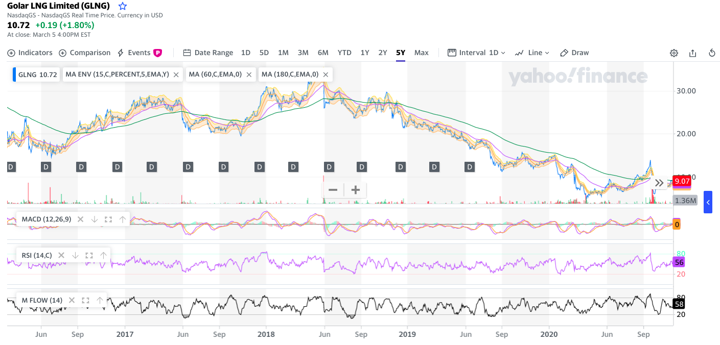 2020 년 12 월, 회사는 LNG Hrvatska에 FSRU LNG Croatia (이전의 Golar Viking)를 매각한다고 발표했습니다. 이 매각으로 회사는 2020 년 4 분기와 2021 년 1 분기 사이에 총 4,700만 달러의 무료 현금을 얻게 될 것입니다. 3 월 6 일 현재 회사의 주식은 $ 10.72에 거래되고 배당 수익률은 5.60 % 입니다. GLNG의 주식은 지난 3 개월 동안 14 % 급증했습니다. 2020 년 4 분기 동안 회사는 1 억 1,800만 달러의 매출을 보고 했습니다.