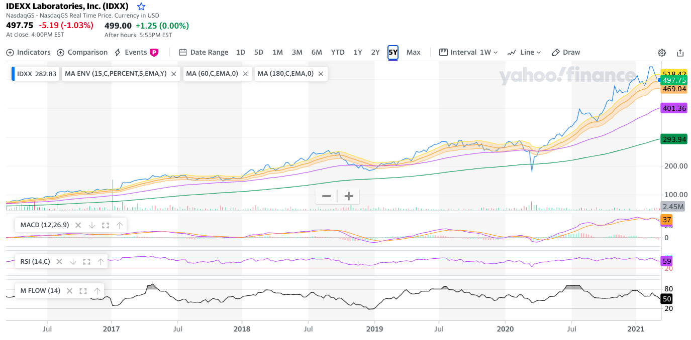 Westbrook에 본사를 둔 IDEXX Laboratories, Inc. 는 수의사, 낙농 시장 및 가축 가금류에 제품과 서비스를 배포합니다. 이 회사는 1991 년 NASDAQ에 처음 상장되었습니다. IDXX의 주가는 지난 12 개월 동안 93 % 급등했습니다. 2020 년 4 분기 동안 회사는 축산물의 꾸준한 성장에 힘 입어 수익이 19 % 증가했다고 보고했습니다.