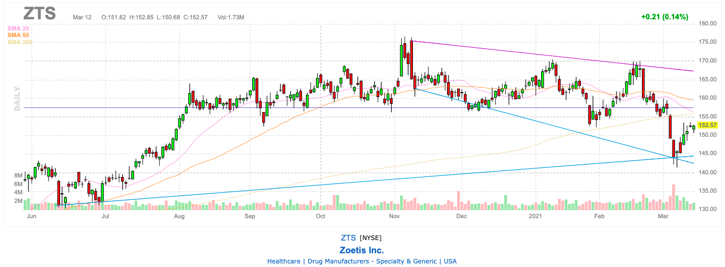 세계적인 동물 건강 회사인 Zoetis, Inc. 는 지금 구매할 수 있는 최고의 애완동물 주식 10 개 목록에서 2 위를 차지했습니다. ZTS는 0.67 % 의 배당 수익률을 제공합니다. 4 분기 매출은 8 % 증가한 18 억 달러를 기록했습니다. 이 회사는 이러한 성장이 강력한 2021 년으로 이어질 것이라고 믿습니다.