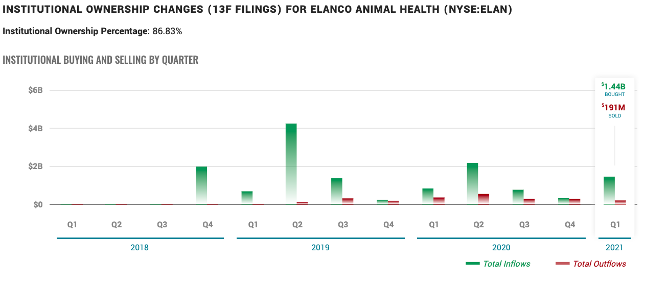Elanco Animal Health, Inc. 의 지분 8 억 5,500만 달러를 보유한 Scott Fergusons의 Sachem Head Capital은 2020 년 4 분기 말 현재 회사의 2,700 만 주를 소유하고 있습니다. 데이터베이스에 따르면 43 개의 헤지 펀드가 ELAN에 지분을 보유하고 있습니다.