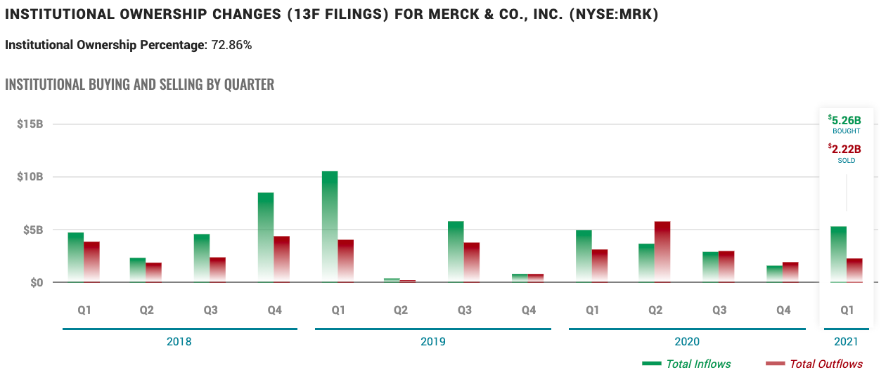 4 분기 말 현재 Insider Monkey 데이터베이스의 887 개 펀드에 있는 헤지 펀드 82 개가 MRK에 지분을 보유하고 있었지만 3 분기에는 80 개가 있었습니다. Irving Kahn의 Kahn Brothers는 5,900만 달러 상당의 73 만 1 천주를 보유한 주식의 가장 큰 이해 관계자입니다. Saturna Capital Corporation은 2020 년 1 분기 투자자 서신에서 몇 가지 주식을 언급했으며 Merck & Co. Inc가 그중 하나였습니다.