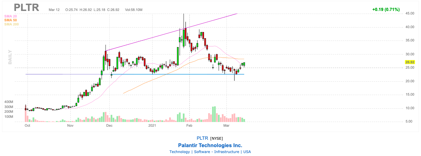 이에 도달하기 위해 주가는 4 일 동안 73 % 상승한 후 몇 주 동안 냉각 및 통합되었습니다. 현재 주가가 20 달러 중반에서 안정되기 위해 노력하면서 Palantir 황소는 자신감을 얻고 있습니다.