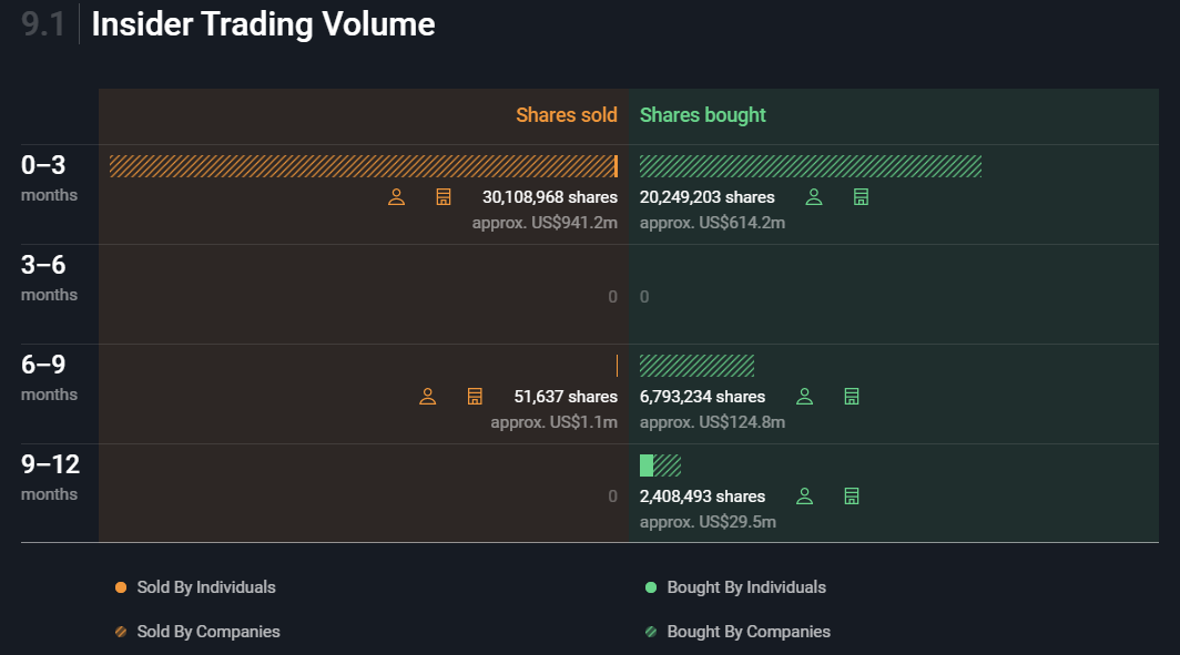 한줄요약 - 내부자들 매도 증가, 향후 실적 개선 전망 다수, 이에 대한 주가 선반영 완료로 고평가 단계로 들어선 듯