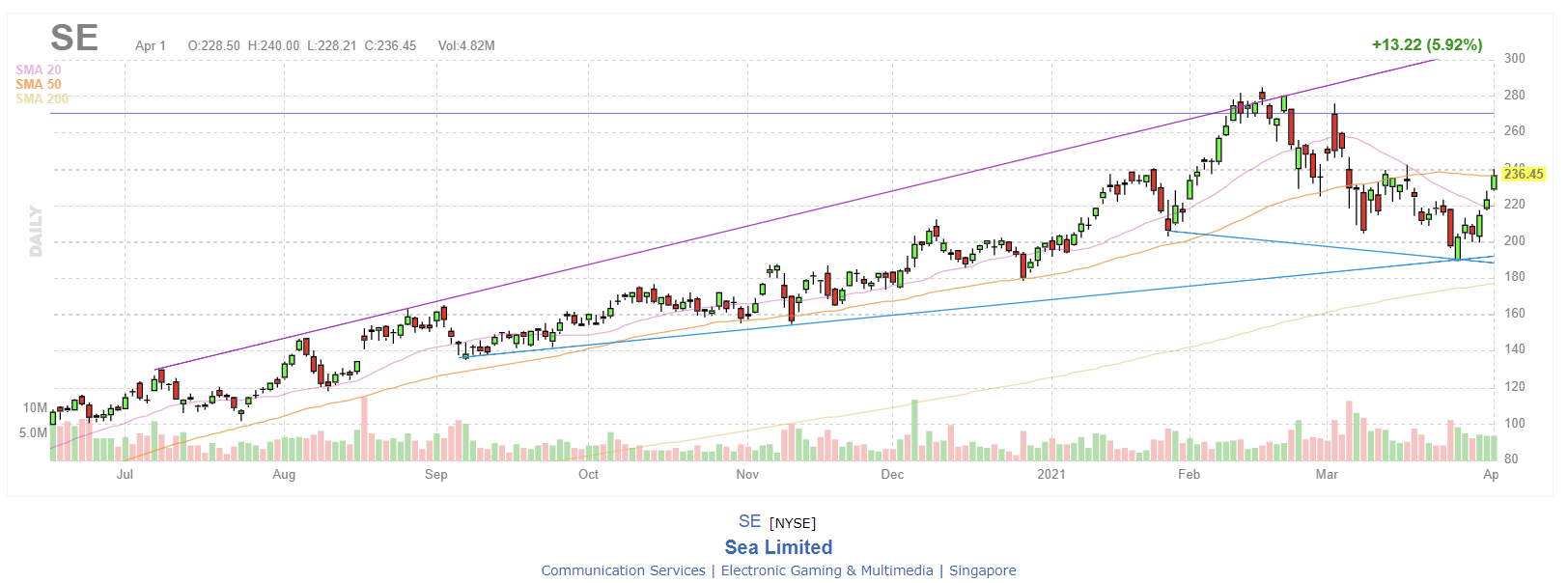 2020 년 4 분기 투자자 서신에서 Hayden Capital은 Sea Limited (NYSE : SE )에 대해 언급하고 회사에 대한 통찰력을 공유했습니다. Sea Limited는 텍사스 주 웨스트 레이크에 기반을 둔 소비자 인터넷 회사로 현재 시가 총액이 1,229 억 달러입니다. 연초 이후 SE는 18.79 % 의 수익률을 달성하여 12 개월 동안의 수익을 430.39 %로 인상적으로 늘 렸습니다. 2021 년 4 월 1 일 현재 주가는 주당 $ 236.45로 마감되었습니다.