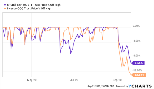 S & P 500 ( SPY )은 불과 몇 주 전에 도달 한 사상 최고치에서 약 10 % 하락했고, 나스닥 ( QQQ )은 거의 13 % 하락했다.