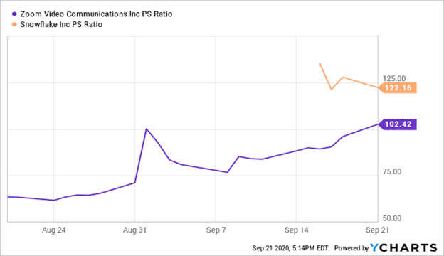 줌과 스노우플레이크의 Price-to-Sales Ratio