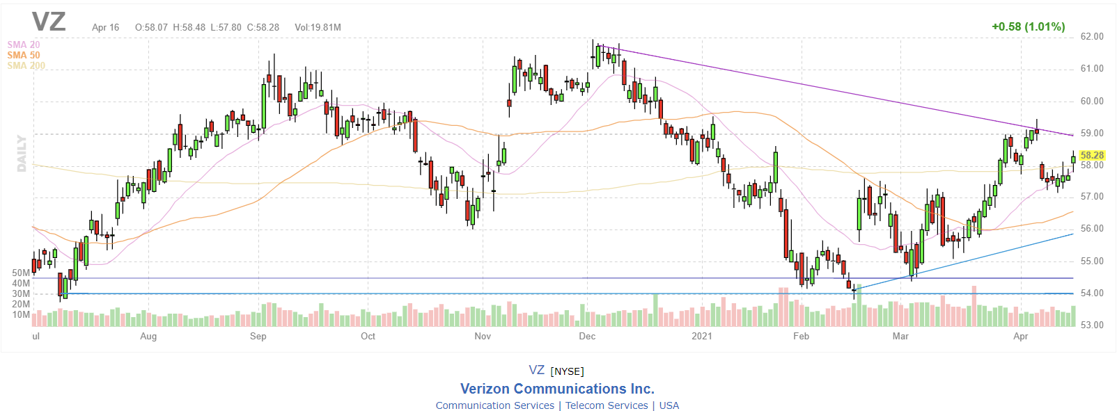 Verizon Communications Inc. (NYSE : VZ)는 뉴욕에 본사를 둔 다국적 통신 회사입니다. 그것은 기술, 정보 및 엔터테인먼트 분야에서 이해관계가 있습니다. 회사에서 판매하는 제품에는 후불 및 선불 서비스 계획, 무선 장비 및 주거용 고정 연결 솔루션이 포함됩니다. 이 회사는 9 천 4 백만 개 이상의 무선 연결과 7 백만 개 이상의 광대역 연결을 보유하고 있습니다. 1983 년에 설립되었으며 장기 투자할 수 있는 10 개의 안전한 주식 목록에서 9 위를 차지했습니다.