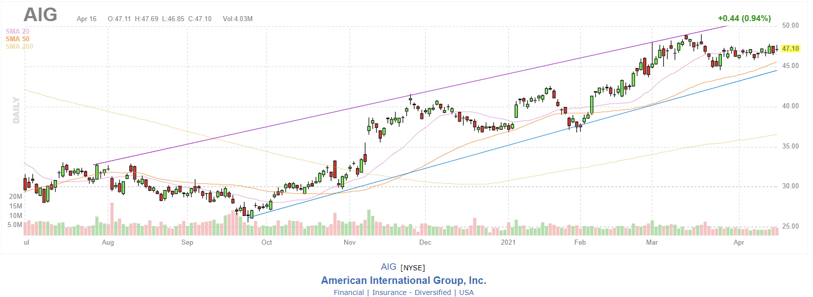 American International Group, Inc. (NYSE : AIG)는 뉴욕에 본사를 둔 보험 회사입니다. 전 세계의 상업, 기관 및 개인 고객을 위해 제품을 판매합니다. 이 회사는 일반 책임, 환경, 상업용 자동차 책임, 사고 및 위기관리 보험 상품에 대한 보호를 제공합니다. 회사는 보험 대리인, 재정 고문, 은행 및 중개인을 통해 제품을 판매합니다. 이 회사는 1919 년에 설립되었으며 장기적으로 투자할 수 있는 10 개의 안전한 주식 목록에 8 개가 포함되었습니다.