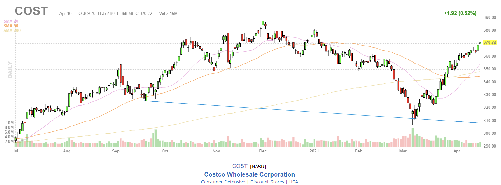 Costco Wholesale (NASDAQ : COST)는 회원 전용 소매점을 운영하는 워싱턴 소재 회사입니다. 미국, 푸에르토 리코, 캐나다, 영국, 멕시코, 일본, 한국, 호주, 스페인, 프랑스, 아이슬란드, 중국 및 대만에서 운영됩니다. 이 회사가 제공하는 제품에는 포장 식품, 식료품, 음료, 청소 용품, 전자 제품 및 수많은 기타 품목이 포함됩니다. 전 세계에 800 개에 가까운 창고가 있습니다. 또한 동일한 품목을 온라인으로 판매하기 위한 전자 상거래 웹 사이트도 있습니다.