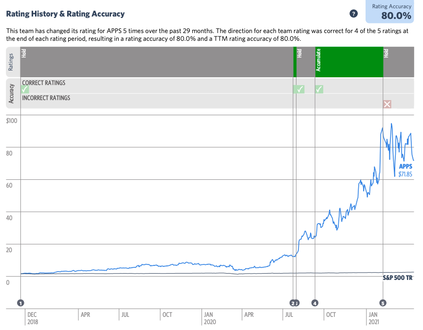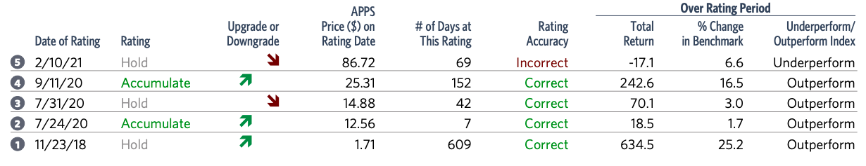 과거 5번의 Rating 중 4회 적중, 최근 1회 미스