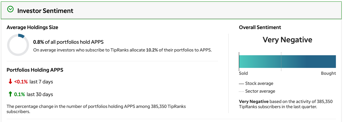 투자자 분위기는 부정적 (*TipRanks 구독자 기준)