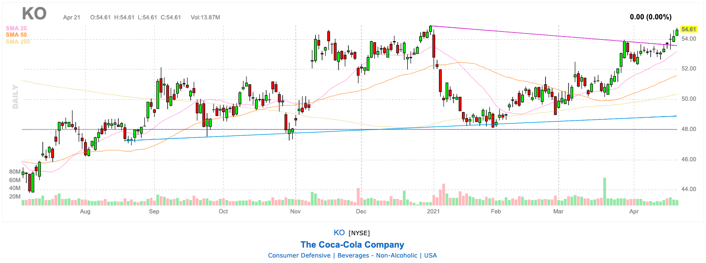 배당 왕인 코카콜라 (NYSE : KO)는 워런 버핏 포트폴리오의 장기 보유 주식으로 전체 포트폴리오의 8.13 %를 차지합니다. 이 회사는 현재 3.15 % 의 배당 수익률을 제공하며 분기 별 배당금은 주당 $ 0.42입니다. KO 주가는 지난 12 개월간 12 % 상승했지만 올해 초부터 녹색 거래에 어려움을 겪었습니다.