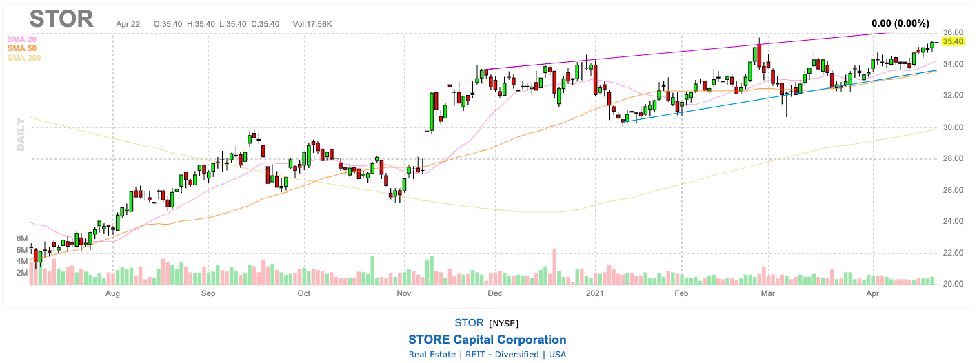 부동산 투자 신탁 STORE Capital Corporation (NYSE : STOR)은 2017 년부터 Warren Buffett의 포트폴리오 회원입니다. STOR는 12 월 분기 말에 Berkshire Hathaway 포트폴리오의 약 0.31 %에 가중치를 둡니다. 부동산 투자 신탁은 현재 4.14 % 의 배당 수익률을 제공합니다. 이 회사는 지난 6 분기 연속 배당금을 올렸으며 지난 5 년간 배당금 증가율은 평균 약 6.17 % 입니다.