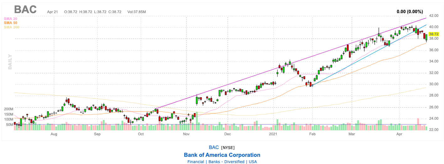 억만장자 Warren Buffett은 2020 년 말에 은행 대기업 Bank of America (NYSE : BAC)의 막대한 지분을 보유하여 포트폴리오의 11.35 %를 차지했습니다. 은행은 주가가 급등했음에도 불구하고 현재 1.84 % 의 배당 수익률을 제공하고 있습니다. BAC 주가는 12 개월 만에 68 % 상승했습니다.
