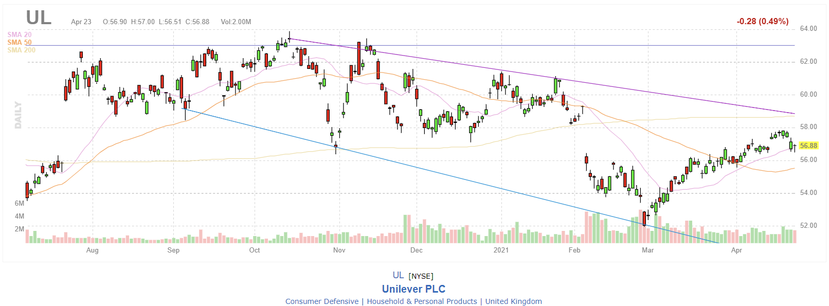 2018 년에 Unilever PLC (NYSE : UL )는 네덜란드 식물 기반 식품 생산 업체 인 채식 정육점을 인수했습니다. 향후 5 ~ 7 년 동안 Unilever는 식물성 육류 및 유제품 대체품으로 12 억 달러의 수익을 올릴 계획입니다. UL의 점유율은 지난 12 개월 동안 9 % 증가했습니다.