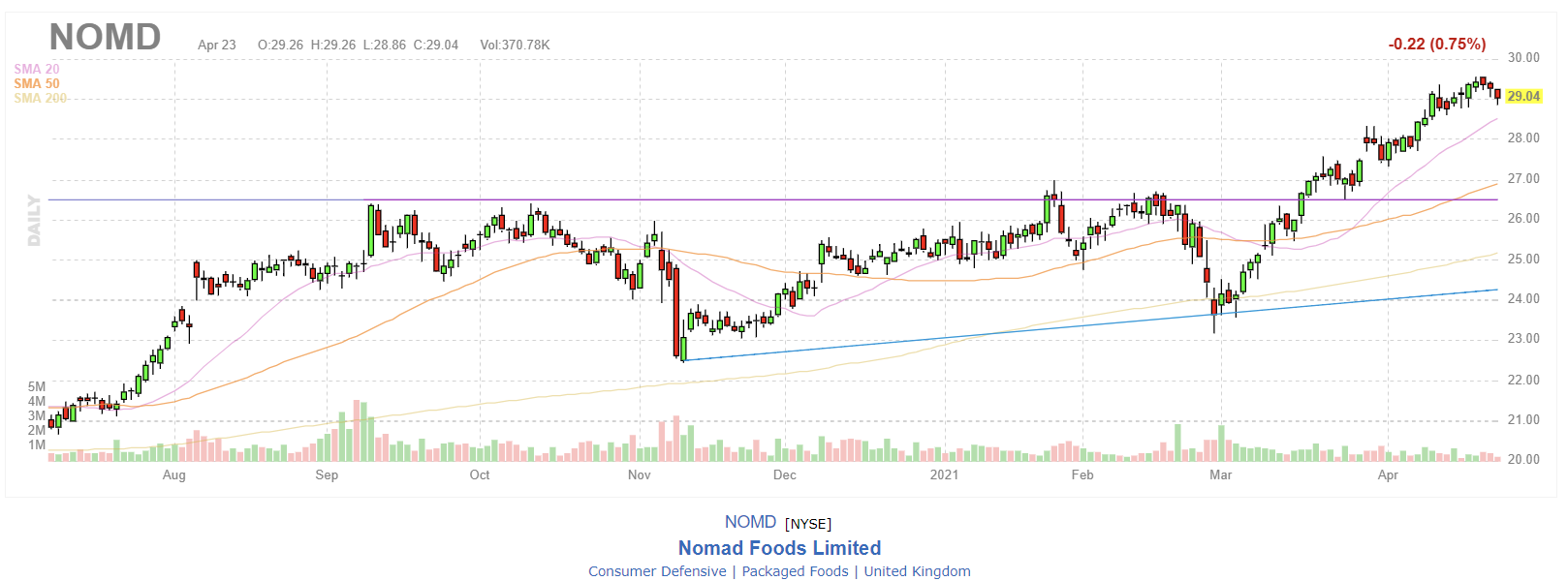 이 회사의 시가 총액은 52 억 달러입니다. NOMD의 주가는 지난 12 개월 동안 41.5 % 급증했습니다. 2020 년 회사의 매출은 30 억 달러로 2019 년 27 억 달러에 비해 8.2 % 증가했습니다. 2021 년 3 월 Credit Suisse 분석가들은 Nomad에게 Outperform 순위를 부여했습니다. 목표 가격은 $ 32로 설정되었습니다.
