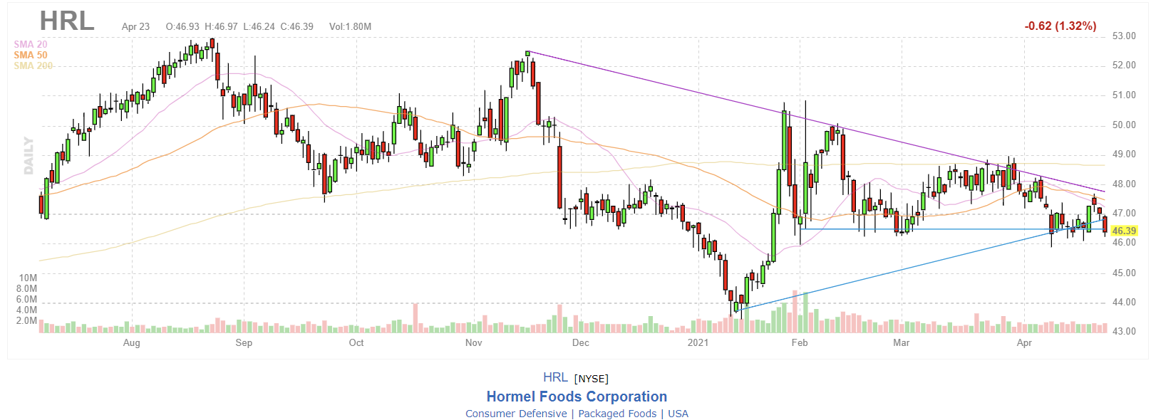 Hormel Foods Corporation은 SPAM 및 SKIPPY 브랜드로도 유명합니다. 이 회사는 2020 년 1 분기에 시가 총액 255 억 달러와 매출 250 만 달러를 기록했습니다. HRL 주식은 지난 12 개월 동안 4.5 % 증가했습니다.