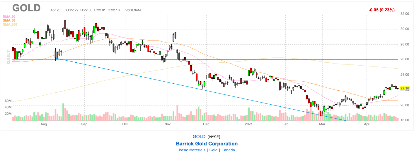1973 년과 1974 년에 금은 60 % 상승한 반면 S & P 500 지수는 20 % 하락했습니다. 2020 년에는 24 % 의 수익률을 기록했으며 2010 년 이후 최고치를 기록했으며 8 월에는 온스당 2,075 달러를 기록했습니다. 그 이후로 $ 1,800와 $ 2,000 범위에서 통합 및 거래되었으며 17 % 손실되었습니다. JPMorgan의 Natasha Kaneva는 가격이 올해 말까지 온스당 $ 1,650까지 떨어질 것으로 예상하고 있습니다. 주목할만한 금 회사는 순금 결과를 게시하고 있습니다. 예를 들어, Barrick Gold (NYSE : GOLD)는 최근 전체 2021 년 지침을 충족할 수 있도록 진행 중이라고 말했습니다. Carlin과 Cortez의 광산 시퀀싱과 Pueblo Viejo의 낮은 등급으로 인해 1 분기 생산량이 예상보다 적다고 말했지만, Barrick Gold (NYSE : GOLD)는 가격 강세 덕분에 2021 년 하반기에 긍정적 결과를 기대하고 있습니다.