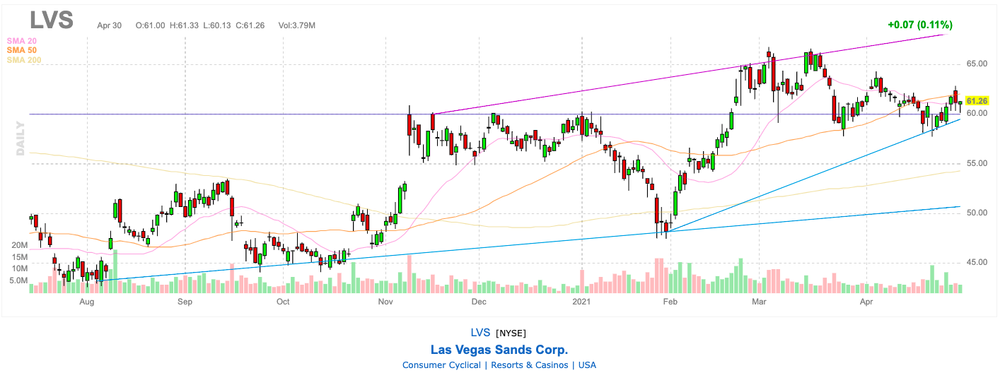 Las Vegas Sands Corp. (NYSE : LVS )와 같은 기존 게임 회사 도 정부가 점차적으로 호텔과 카지노에 100 % 용량을 허용함에 따라 꾸준한 이익을 얻고 있습니다. 클락 카운티에서 카지노는 다음 달부터 80 %로 운영할 수 있으며 해당 지역의 예방 접종률이 60 %에 도달하면 완전히 운영될 수 있습니다. Las Vegas Sands Corp. (NYSE : LVS)는 아시아에서의 느린 백신 출시로 인해 국제 수익이 타격을 입어 텍사스에서 확장할 계획을 가지고 있습니다. 그러나 중국이 대량 예방 접종을 하고 있는 가운데 마카오도 서서히 회복되고 있습니다.
